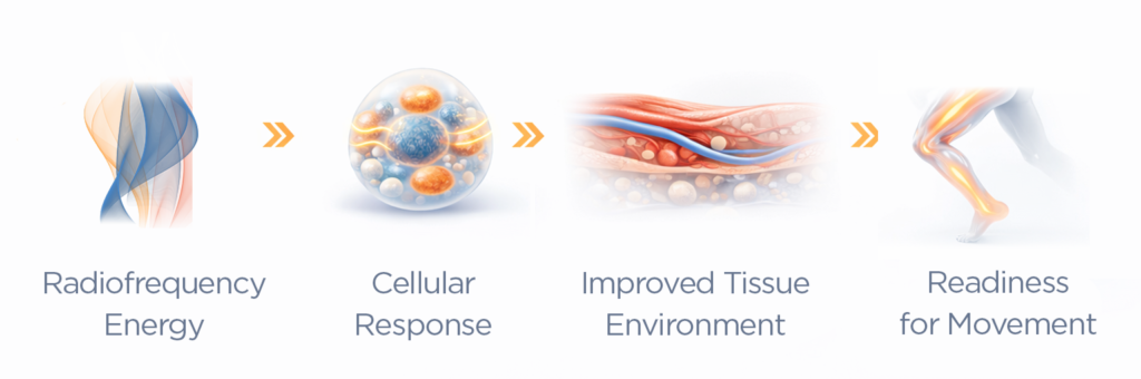 Radiofrequency supports healing by improving the conditions in which cells operate. Rather than forcing mechanical change, it encourages an endogenous response—allowing tissue to actively participate in recovery.