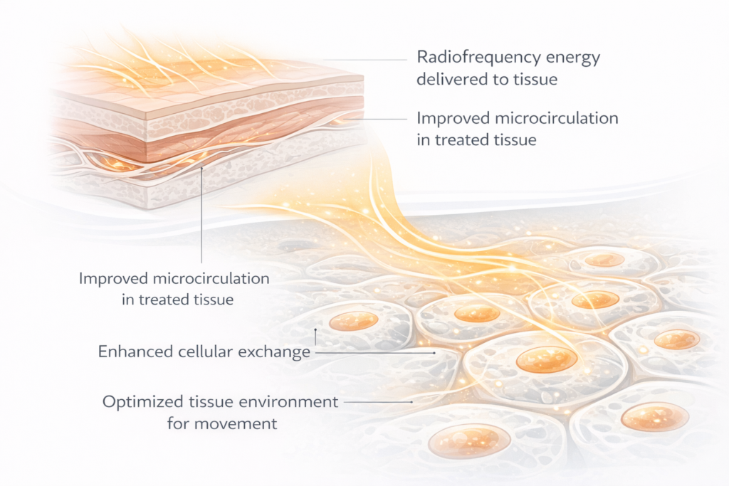 When radiofrequency energy is delivered to tissue, the effects extend beyond surface warmth. The interaction occurs within the tissue itself, supporting:
