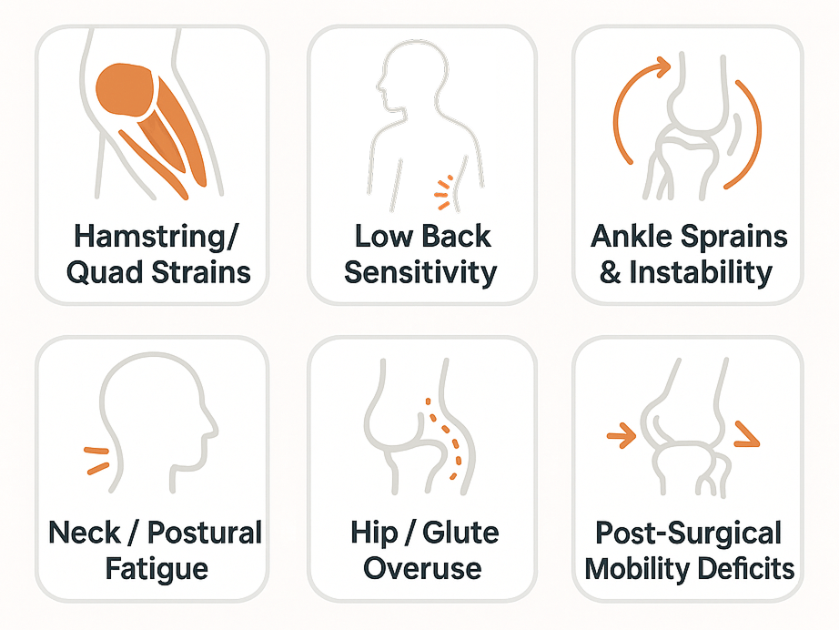Supports mobility and stability progressions. - Ankle sprains and instability